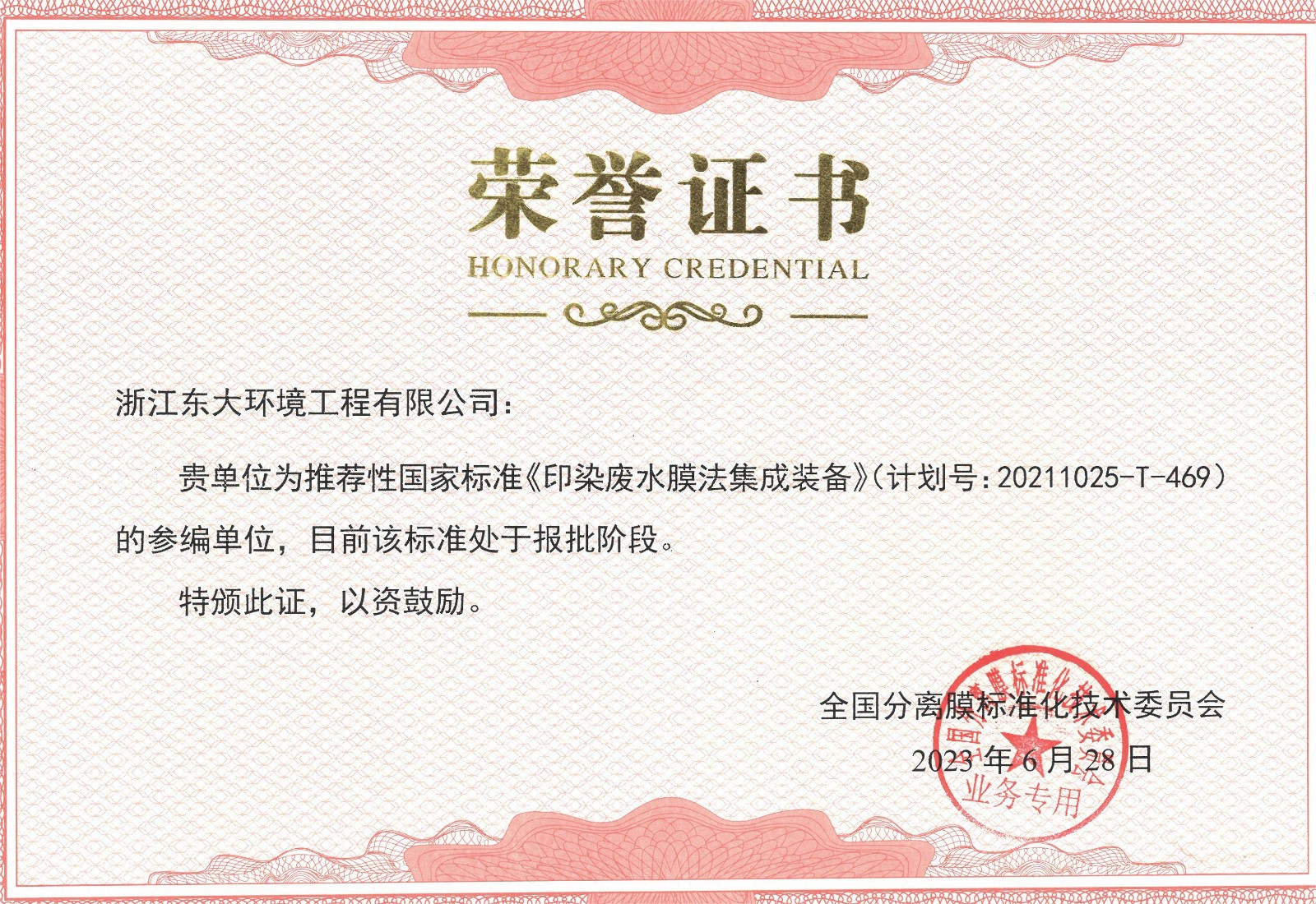 推薦性國家標準參編證書;