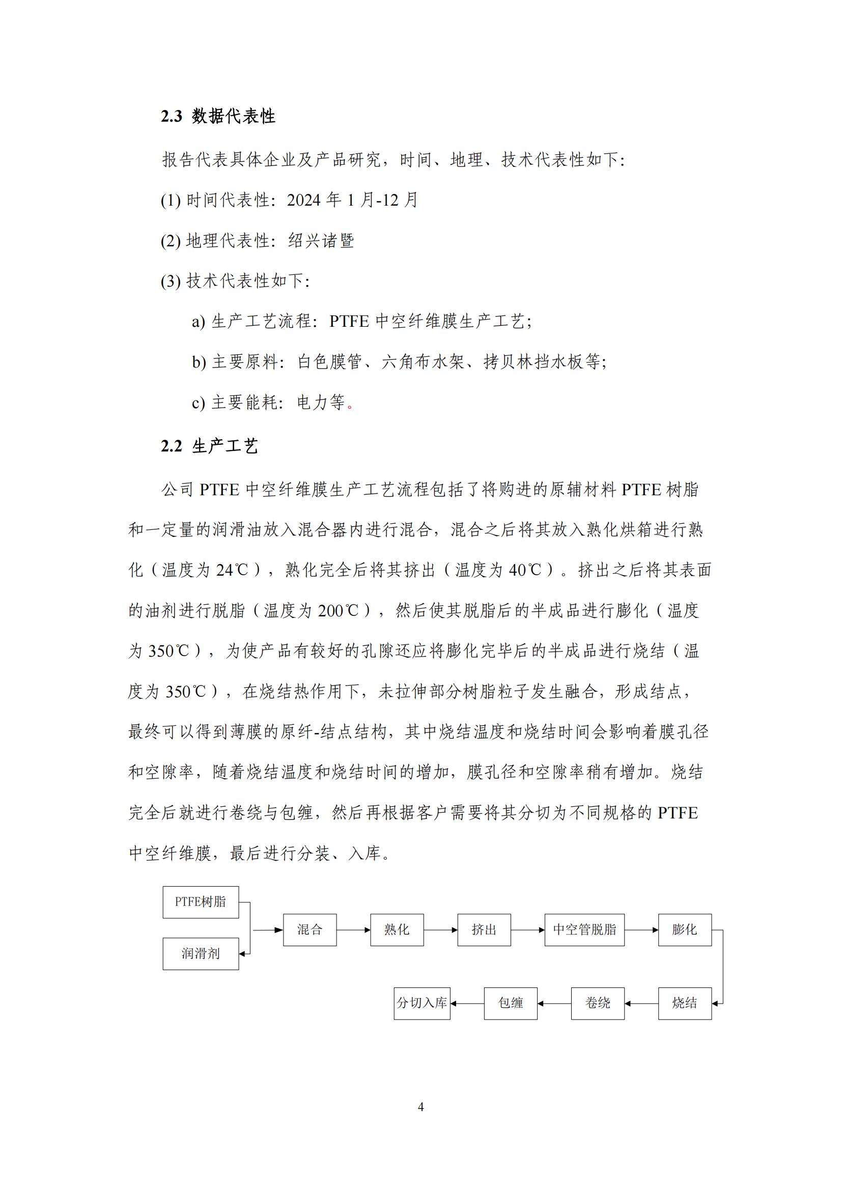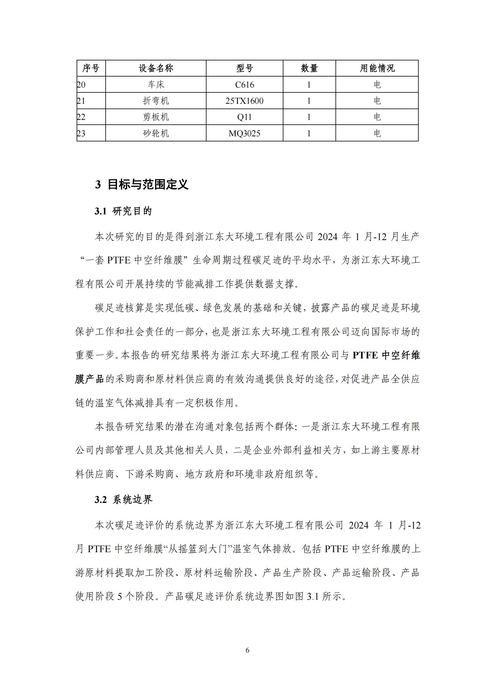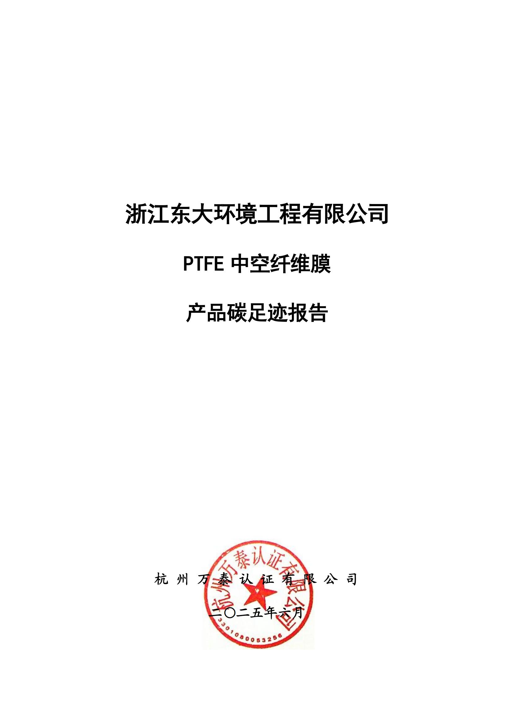 產(chǎn)品碳足跡報(bào)告-浙江東大環(huán)境-PTFE中空纖維膜(2024)