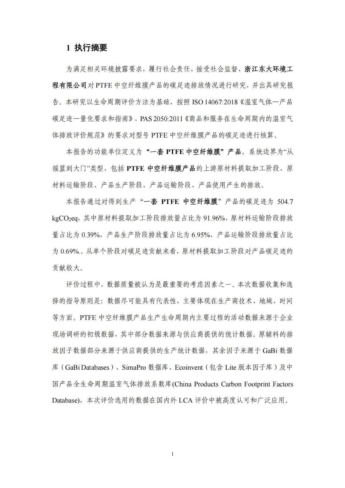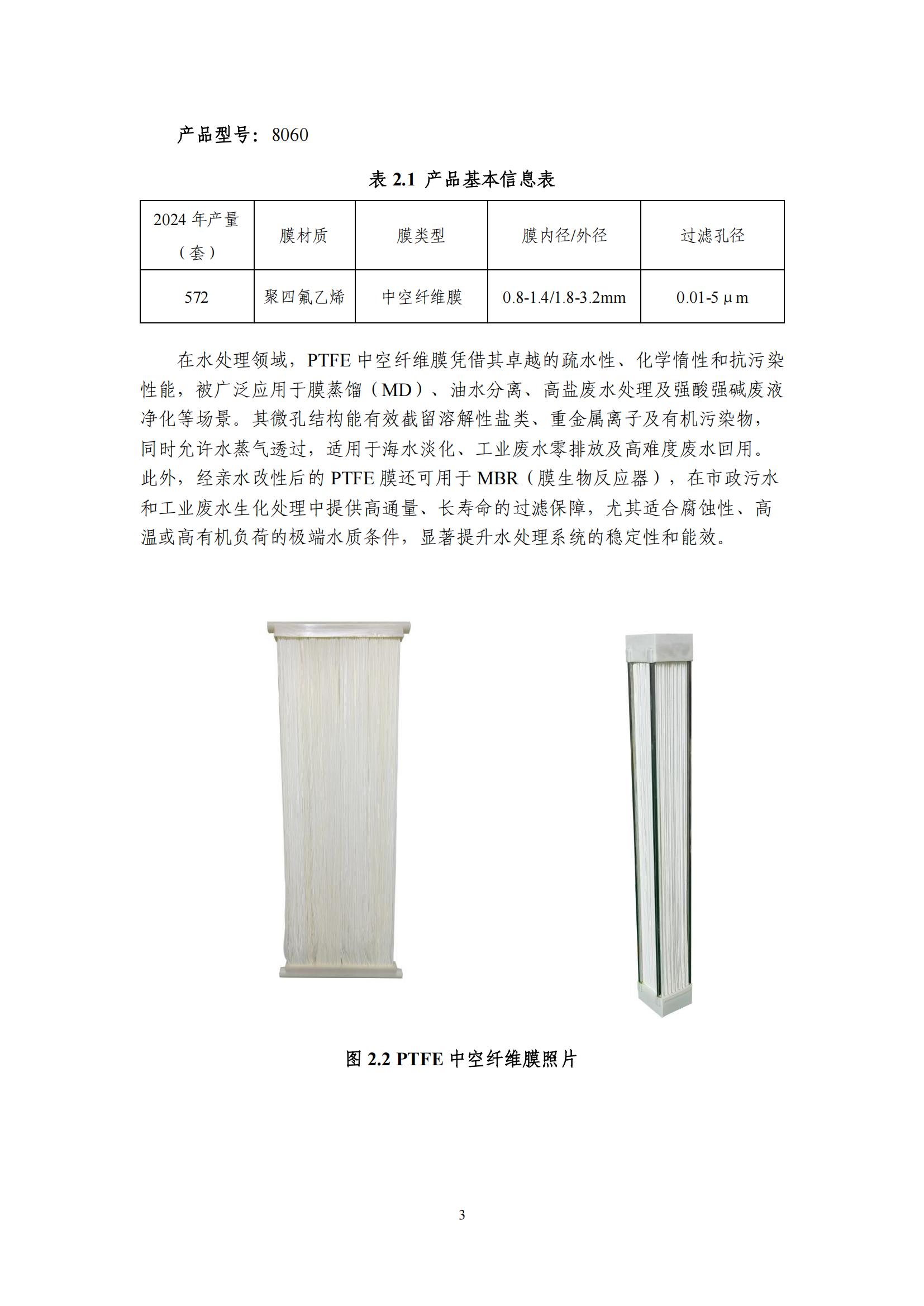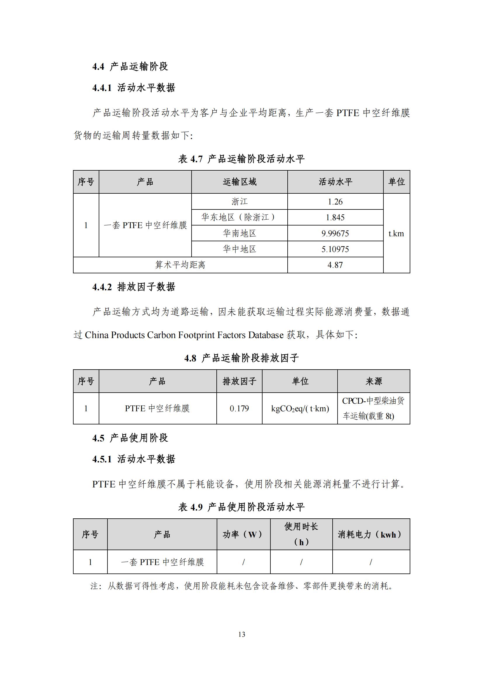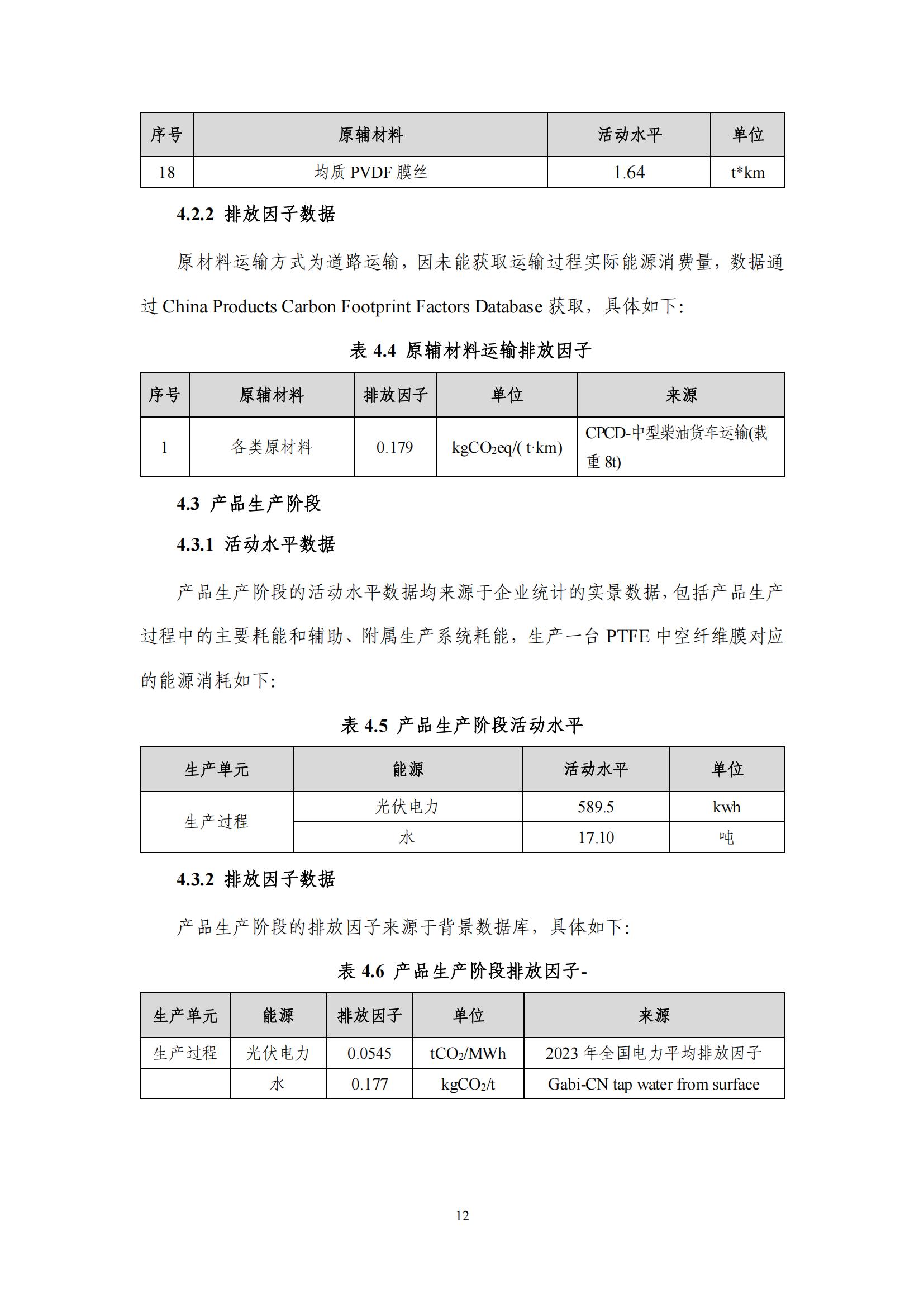 產(chǎn)品碳足跡報(bào)告-浙江東大環(huán)境-PTFE中空纖維膜(2024)