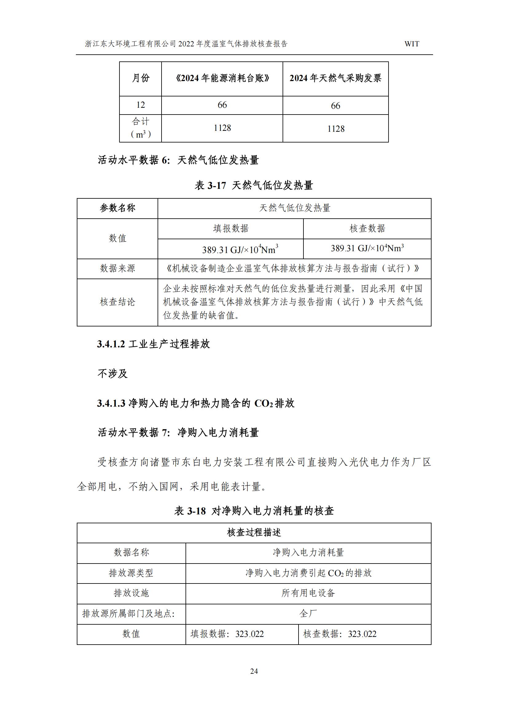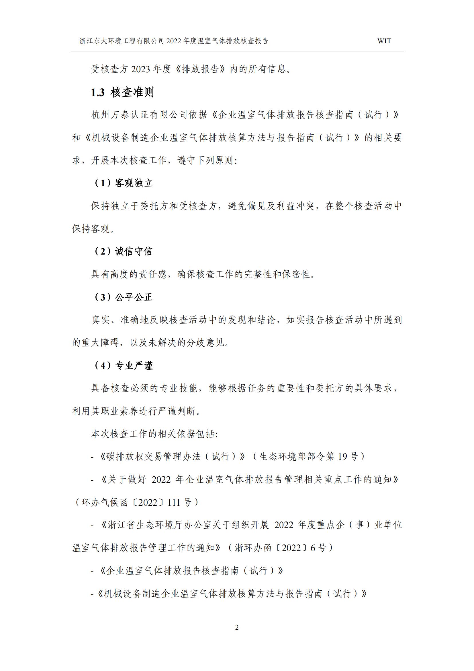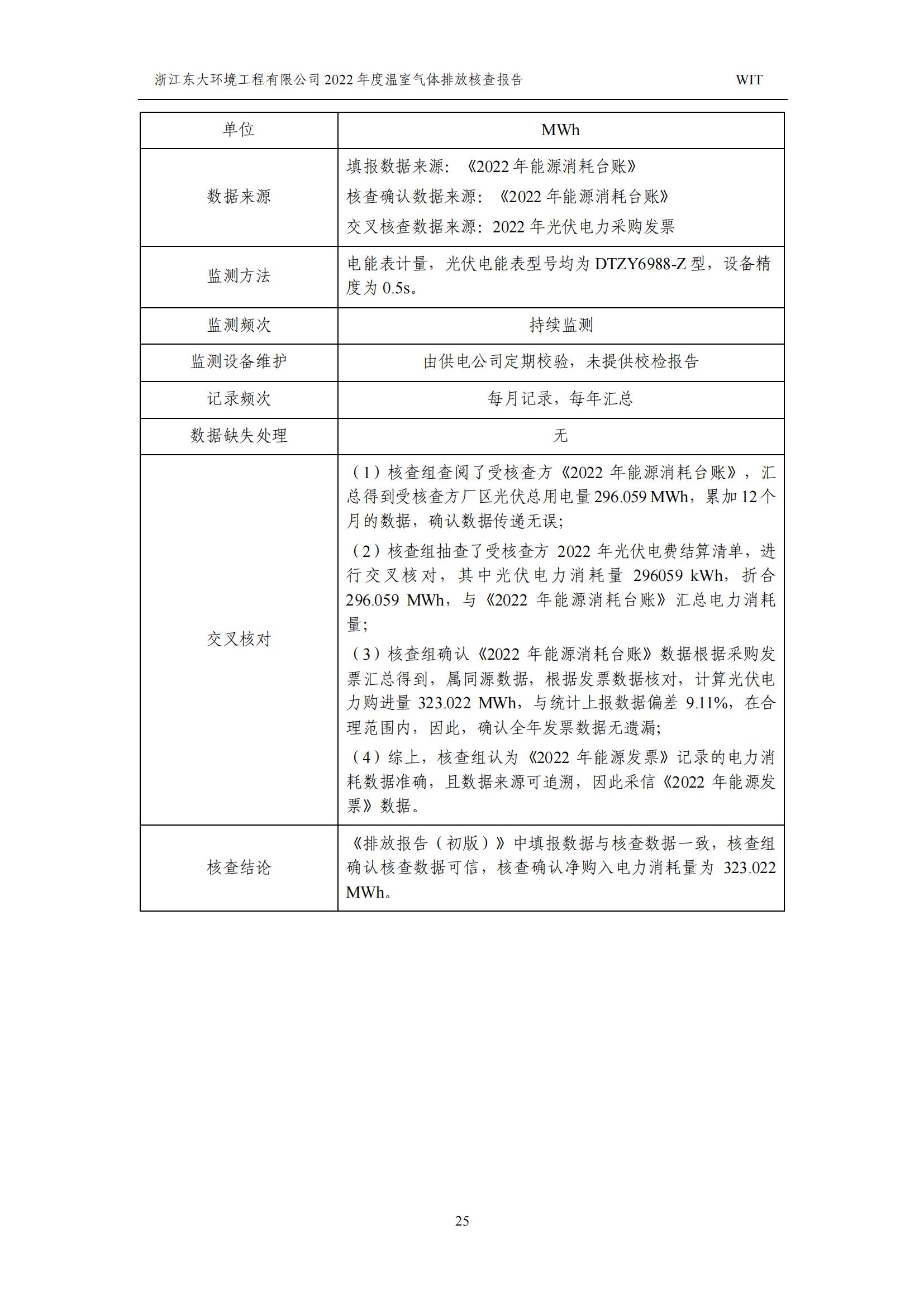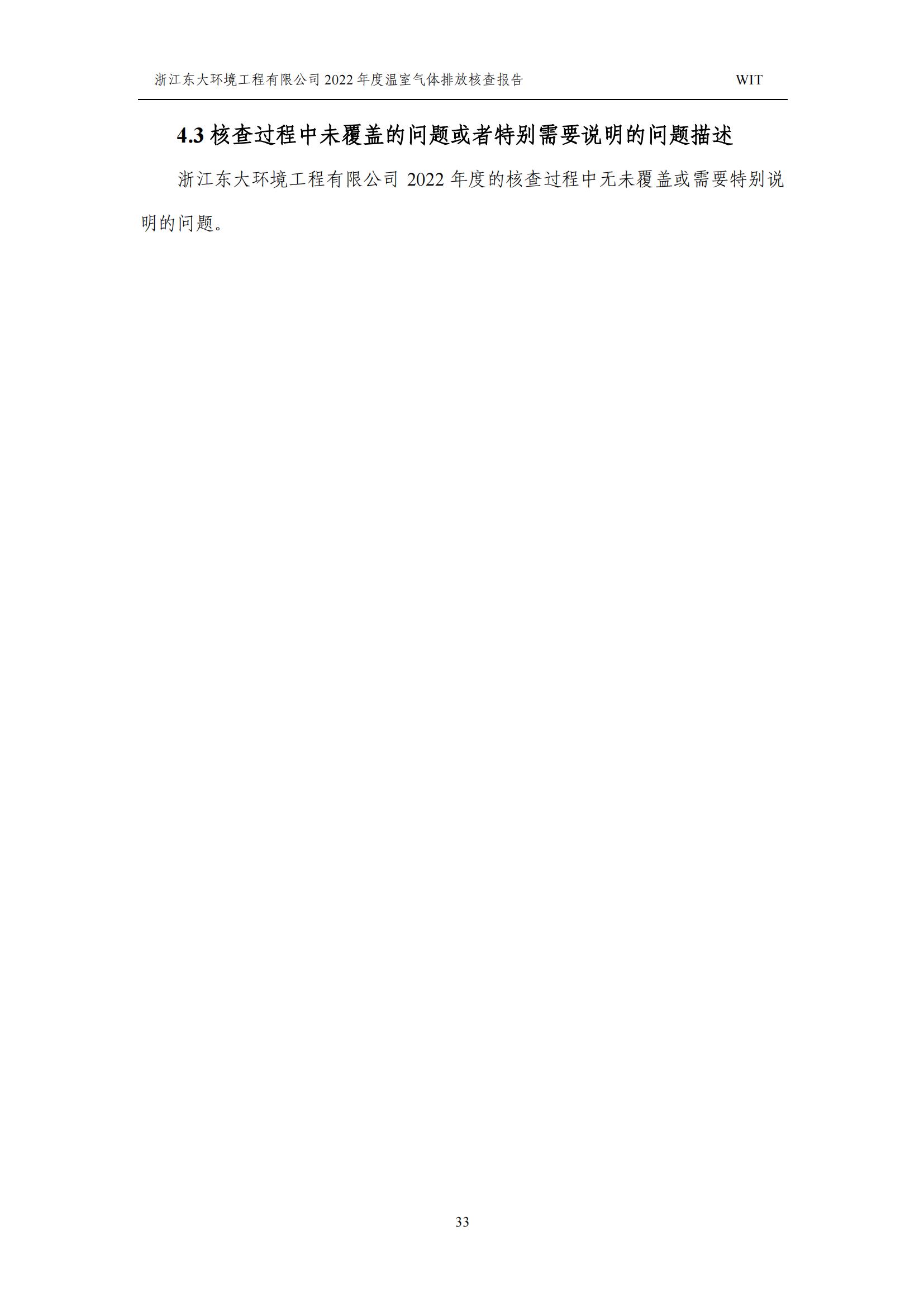 浙江東大環境工程有限公司2022年溫室氣體排放核查報告