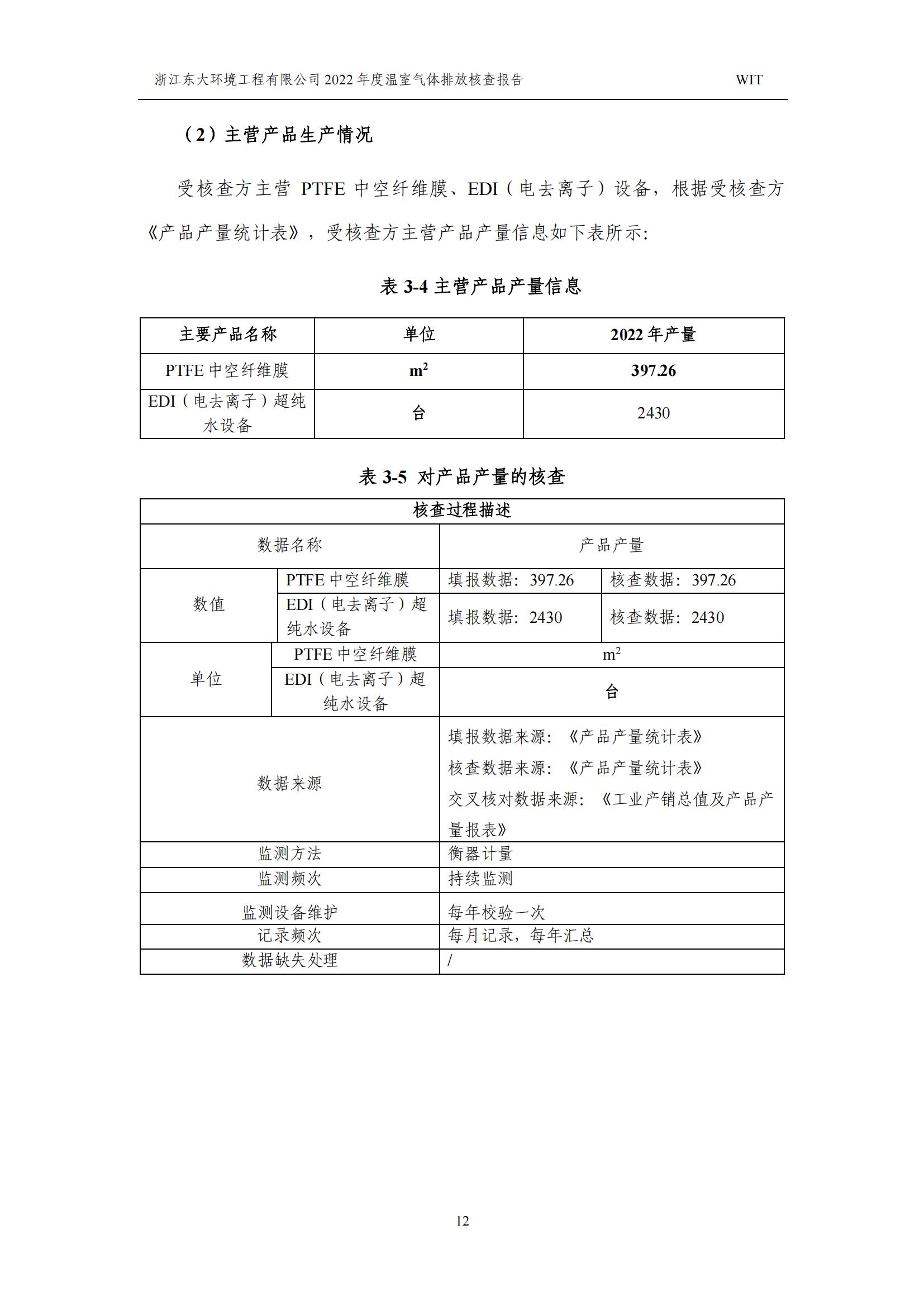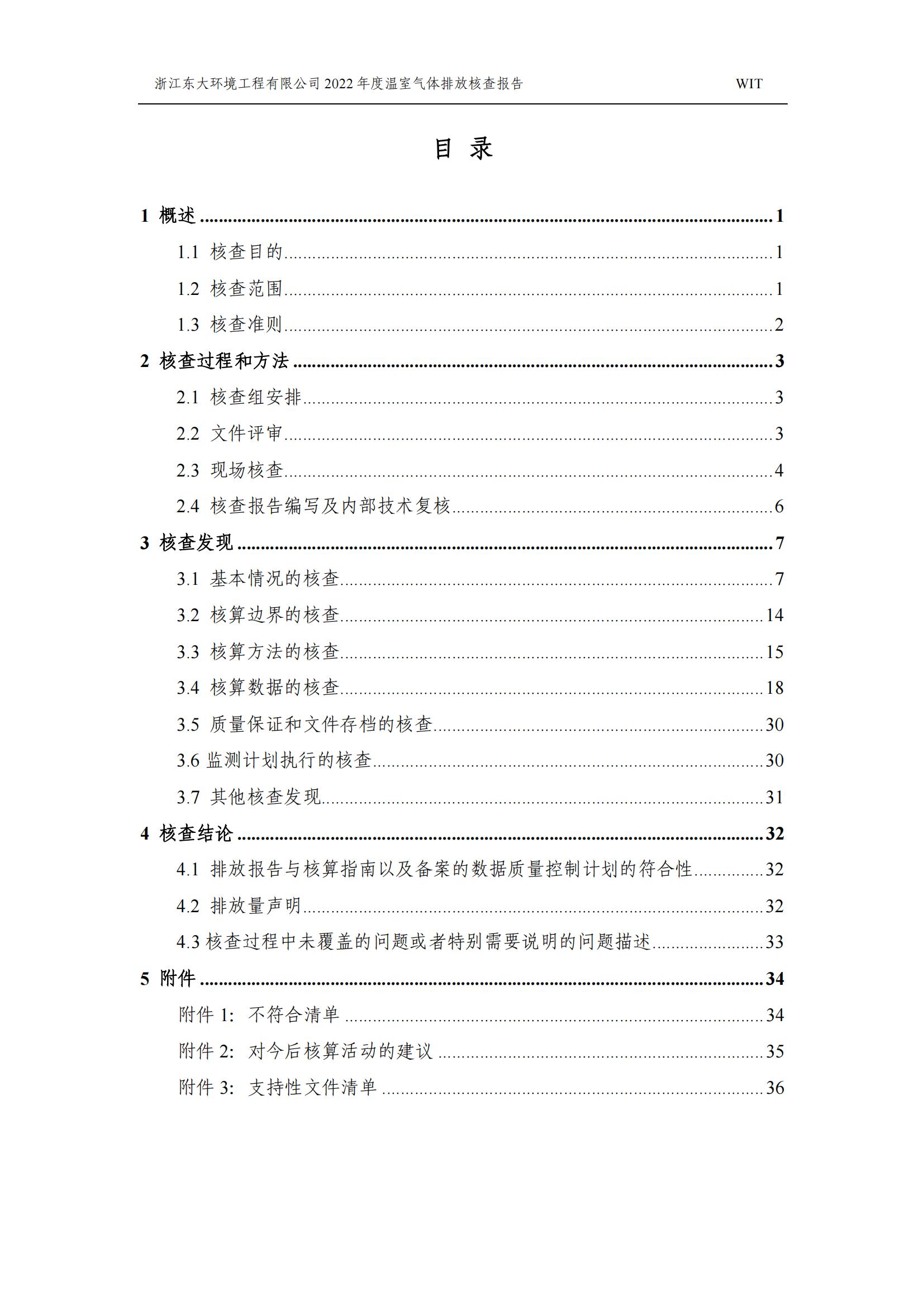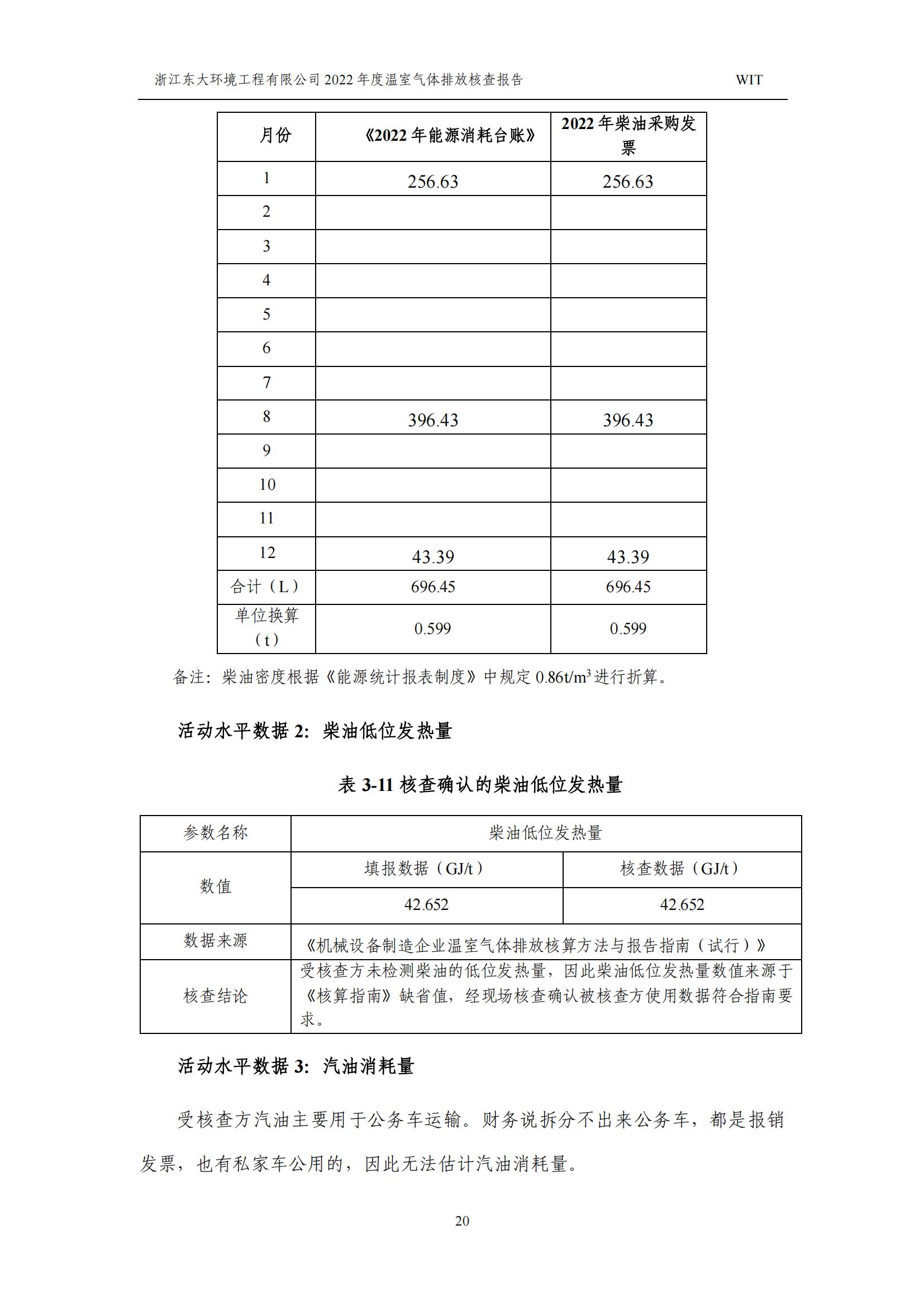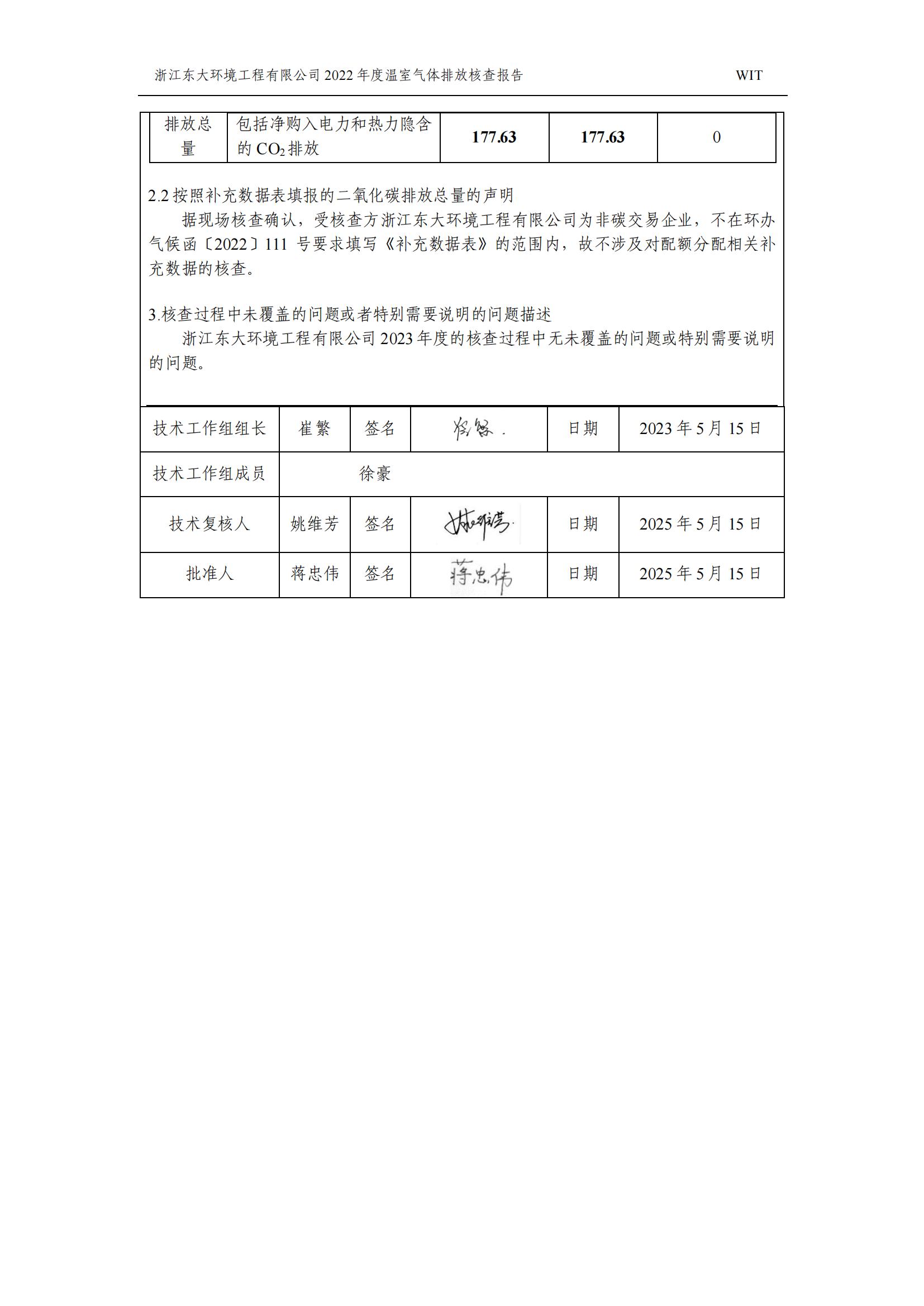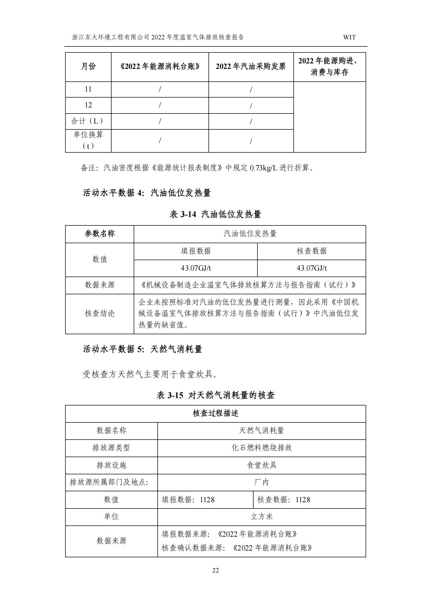浙江東大環境工程有限公司2022年溫室氣體排放核查報告