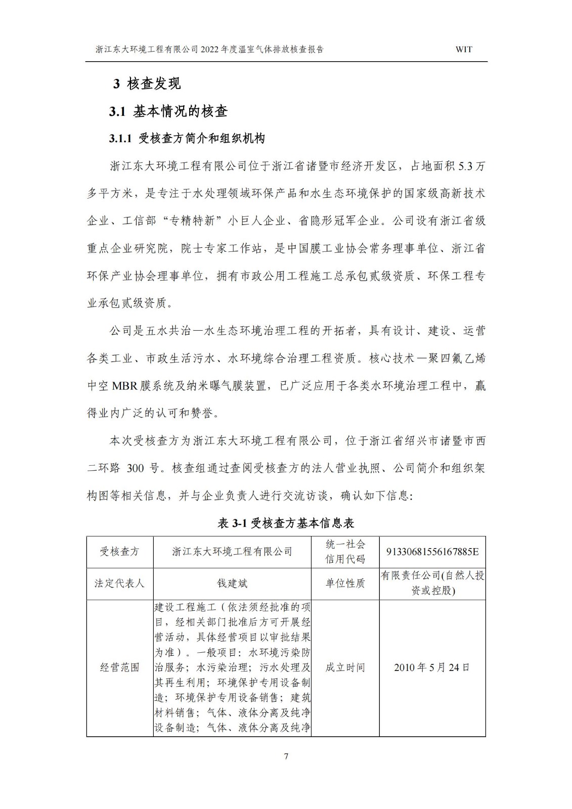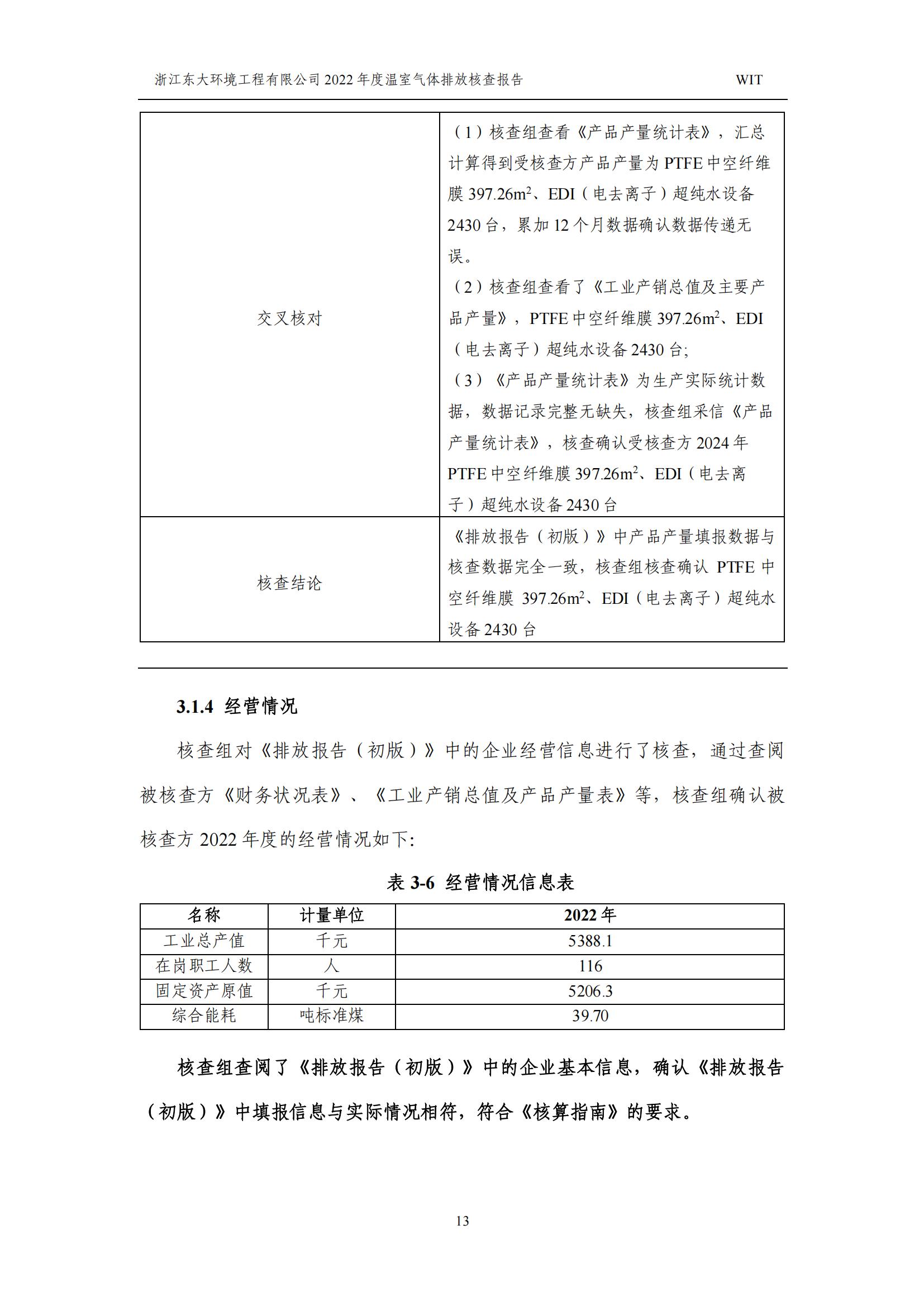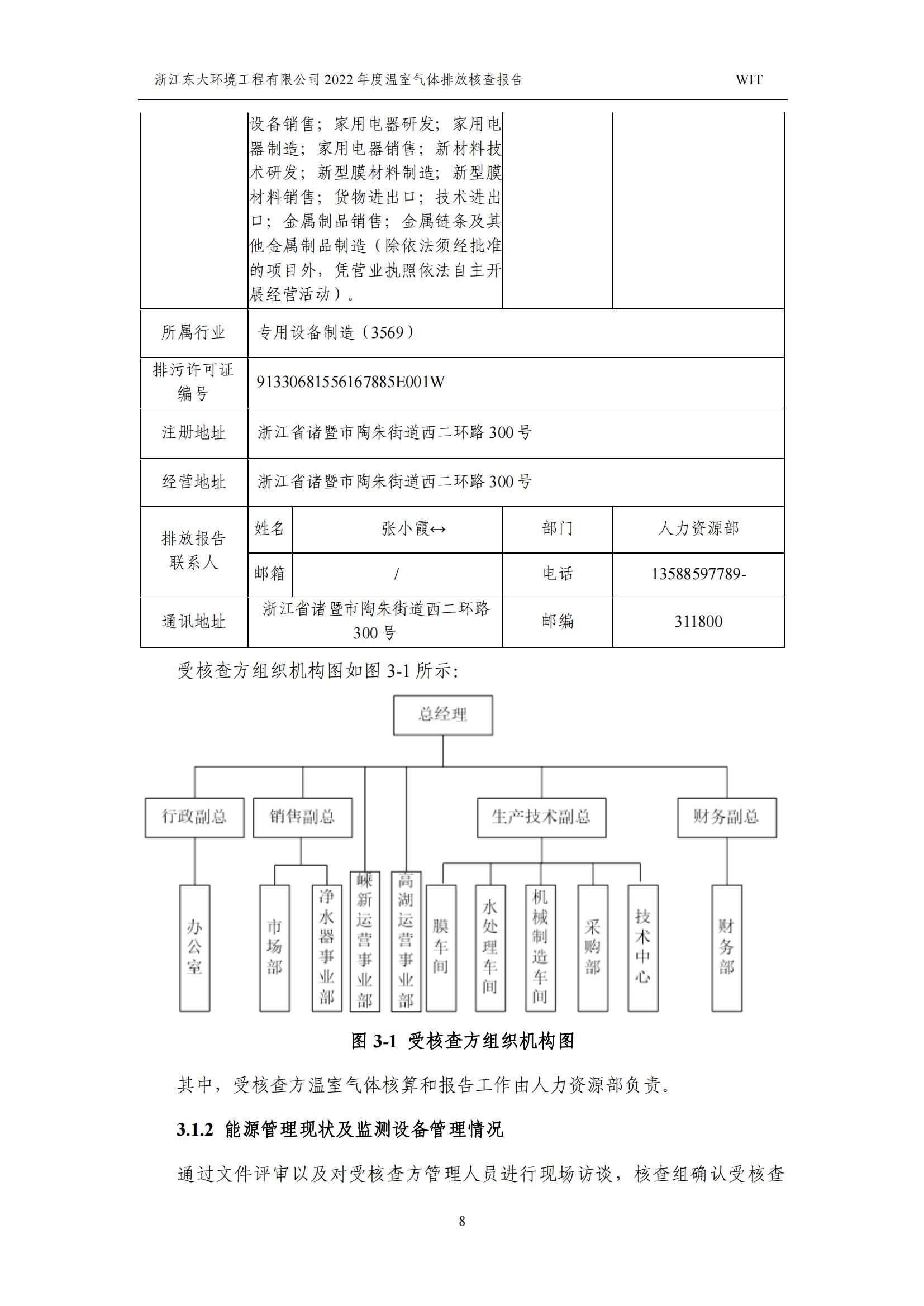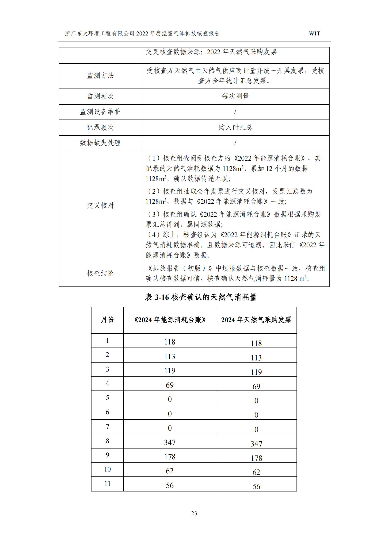 浙江東大環境工程有限公司2022年溫室氣體排放核查報告