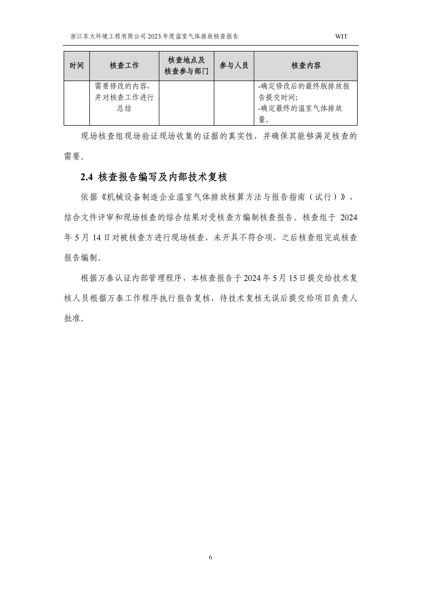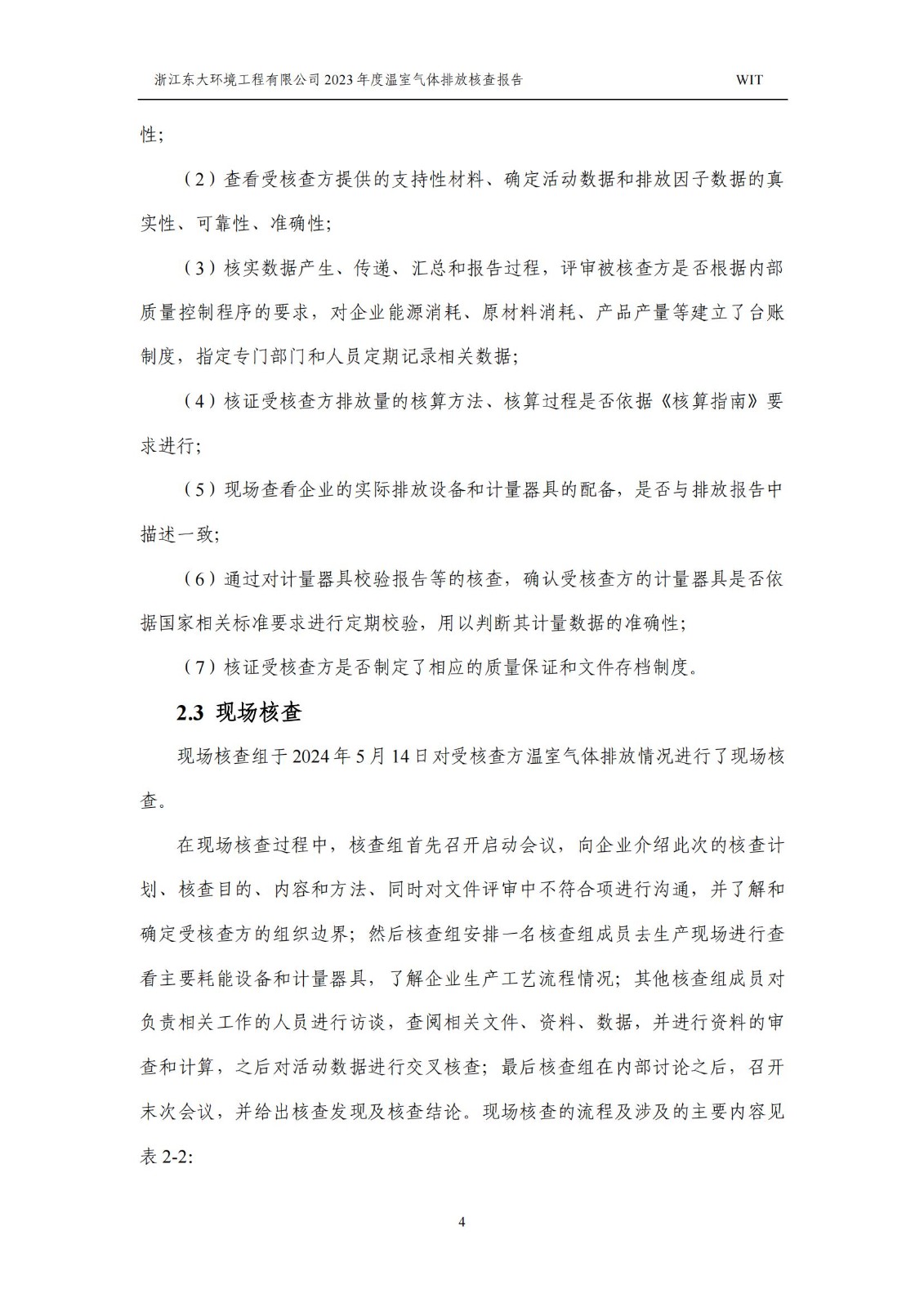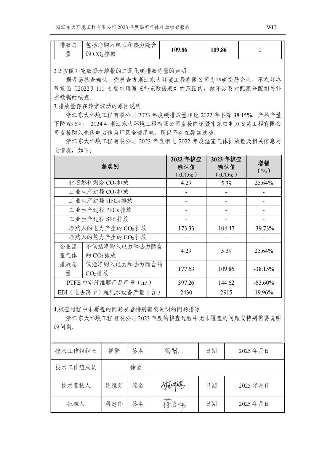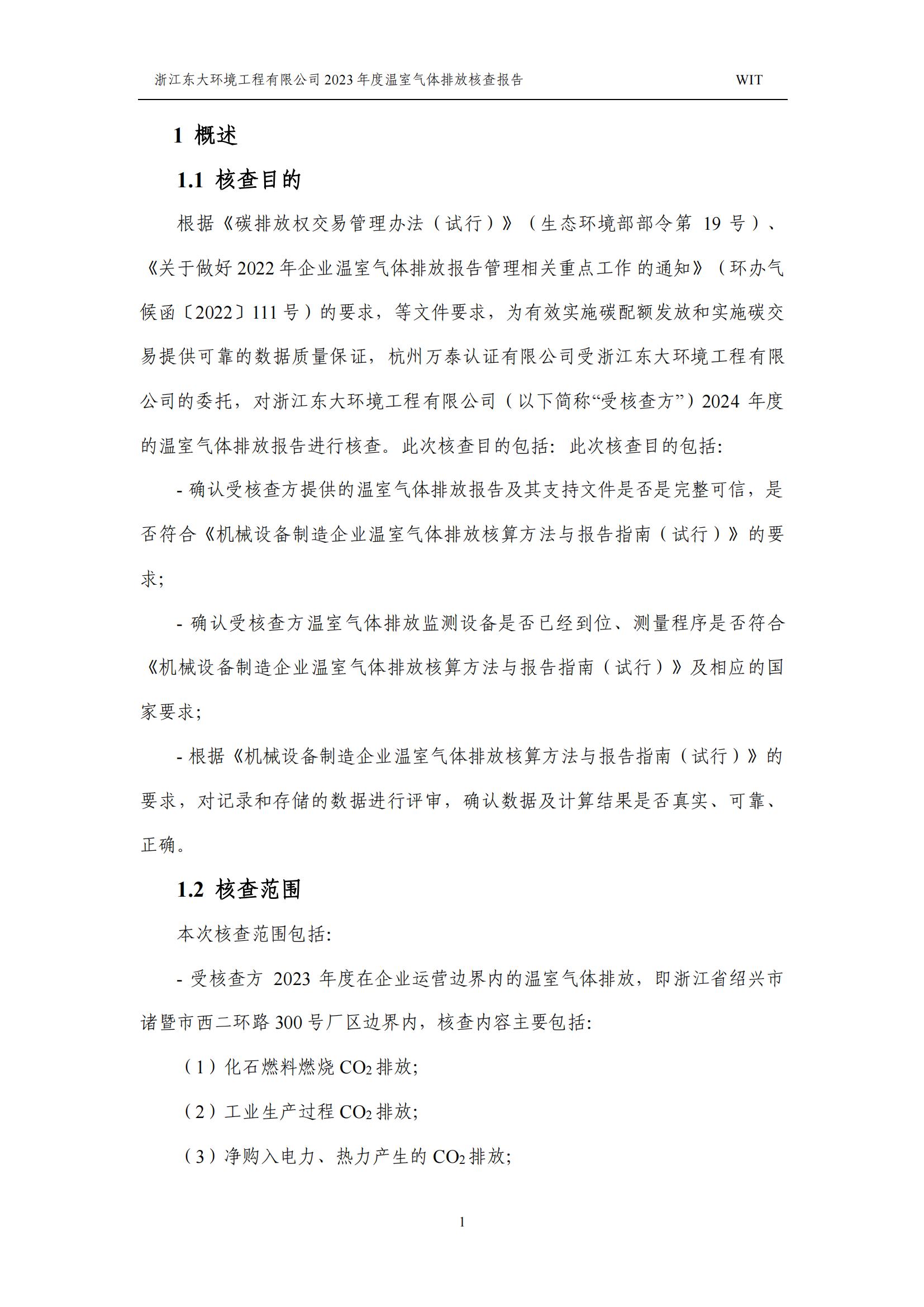 浙江東大環(huán)境工程有限公司2023年溫室氣體排放核查報(bào)告