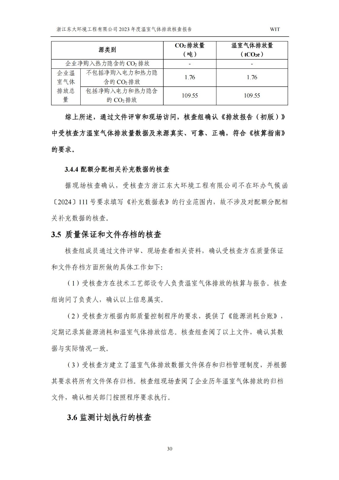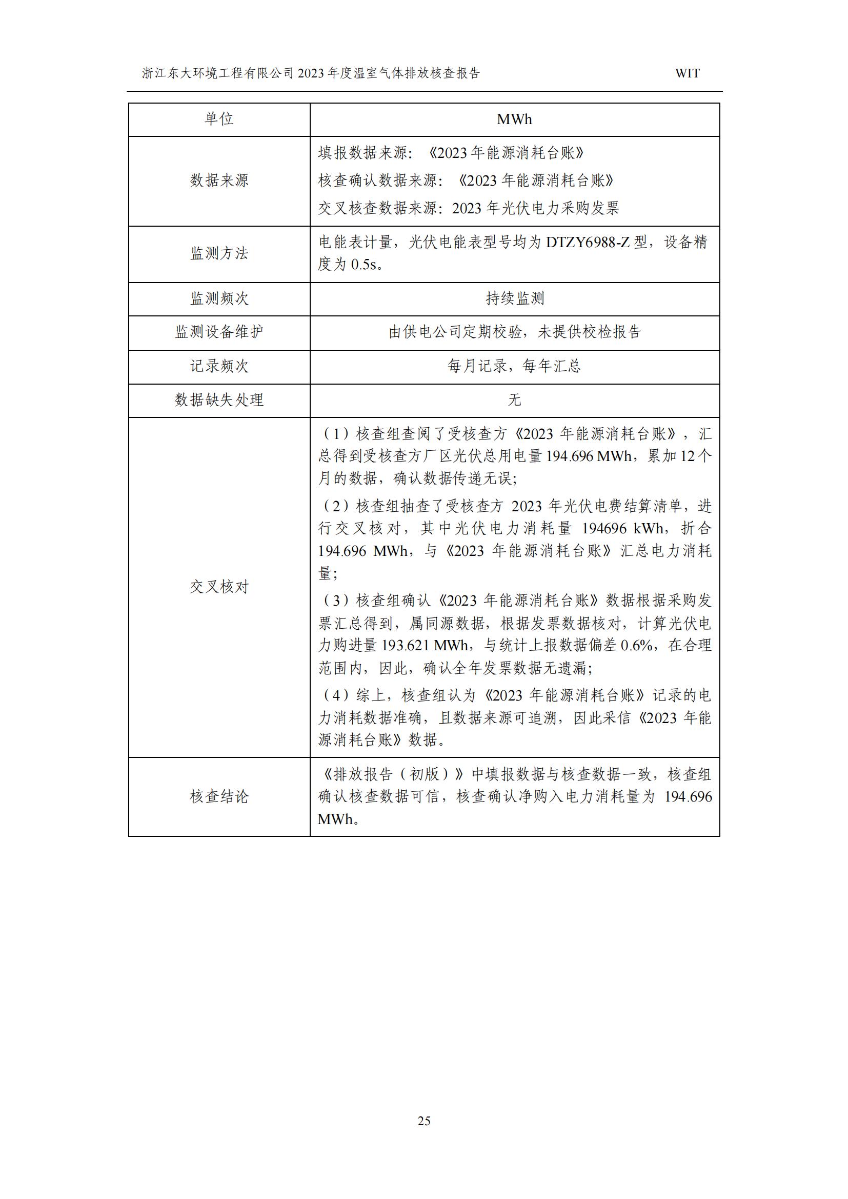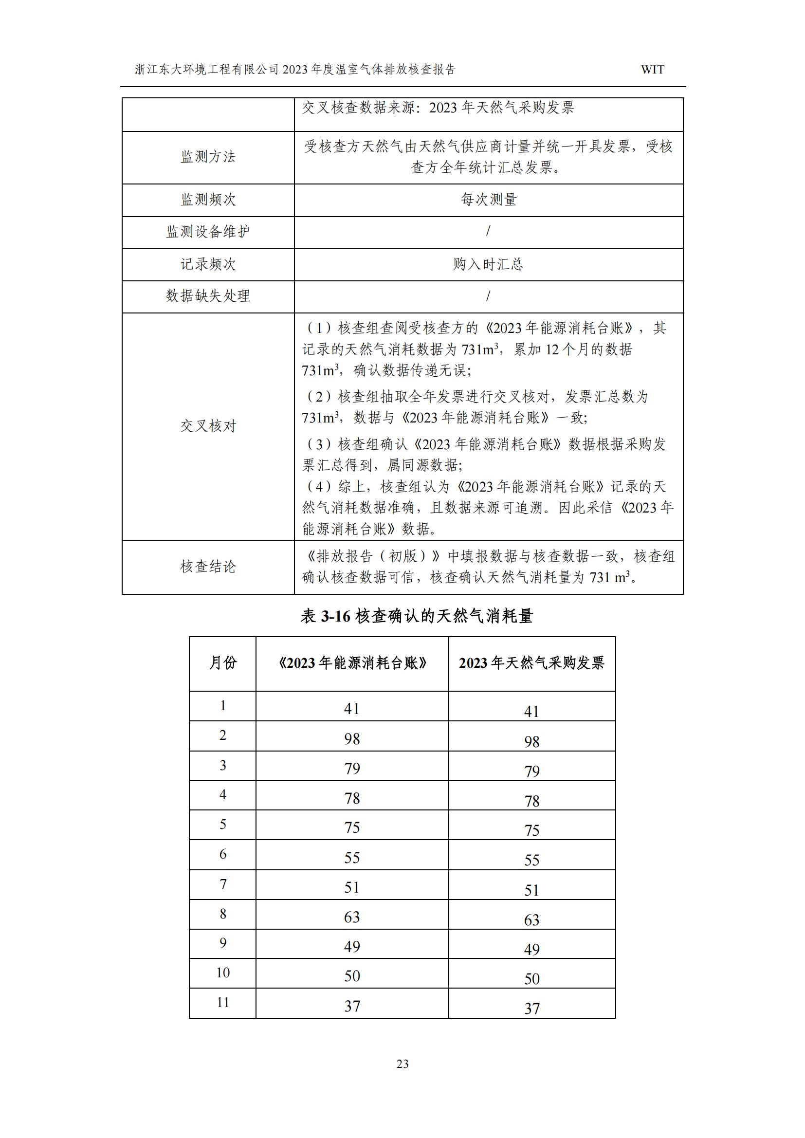 浙江東大環(huán)境工程有限公司2023年溫室氣體排放核查報(bào)告
