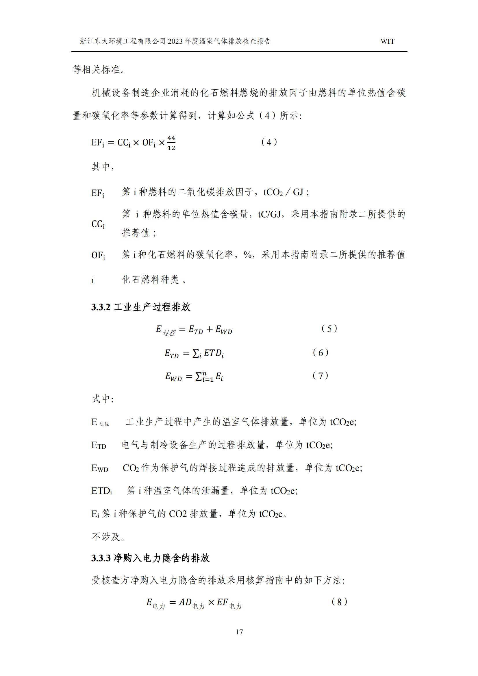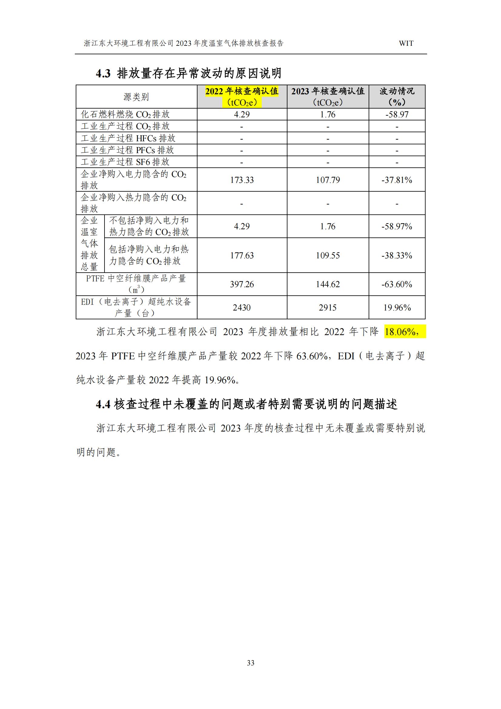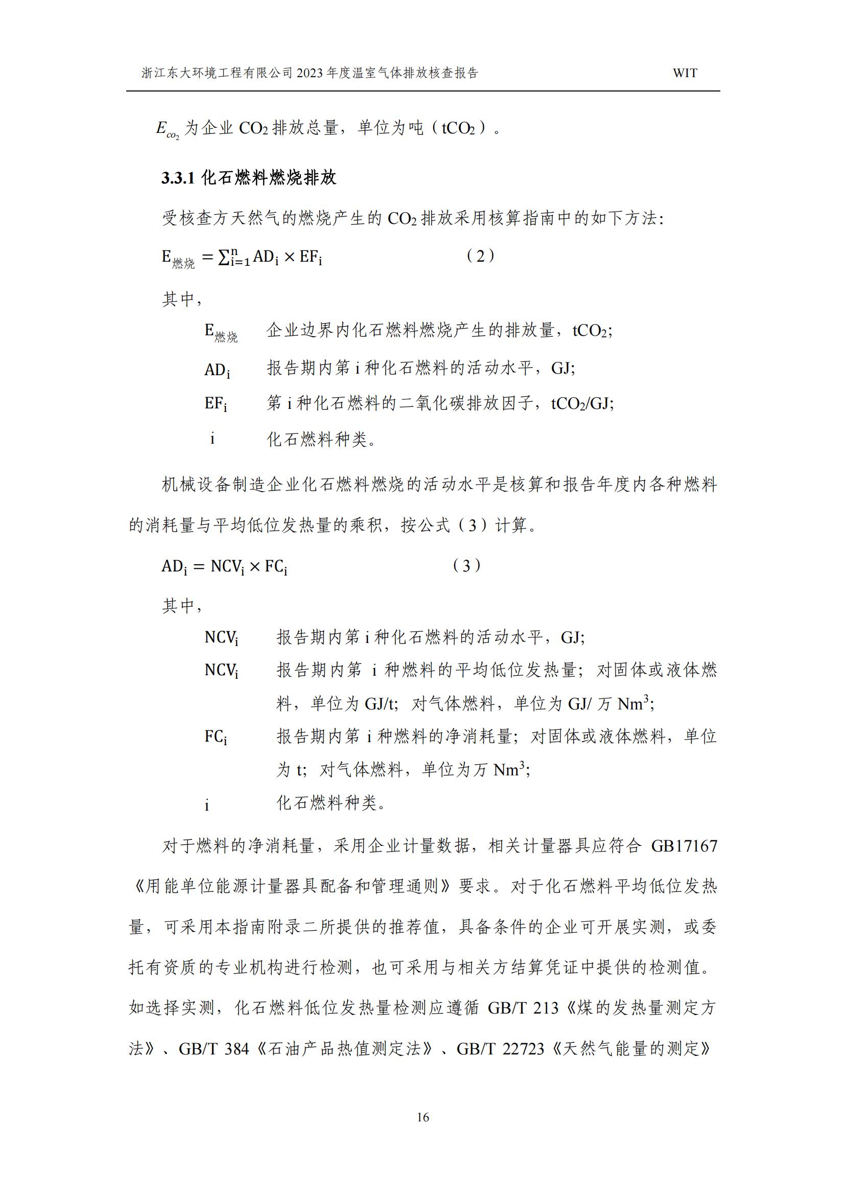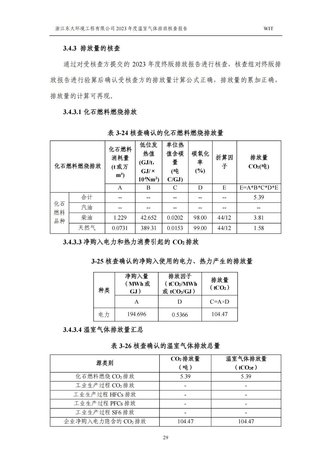 浙江東大環(huán)境工程有限公司2023年溫室氣體排放核查報(bào)告